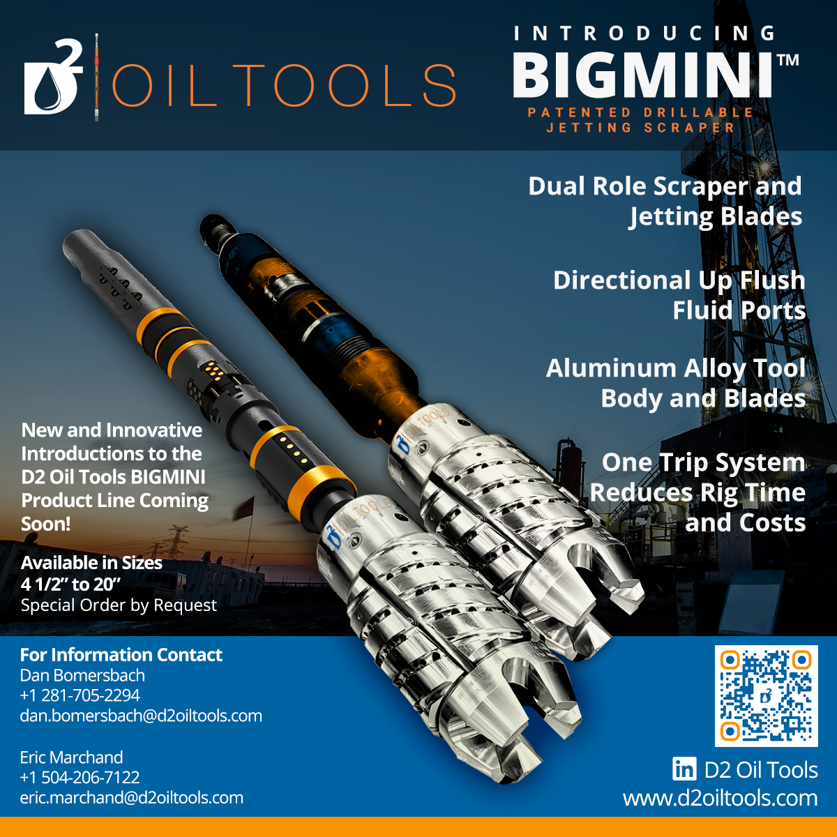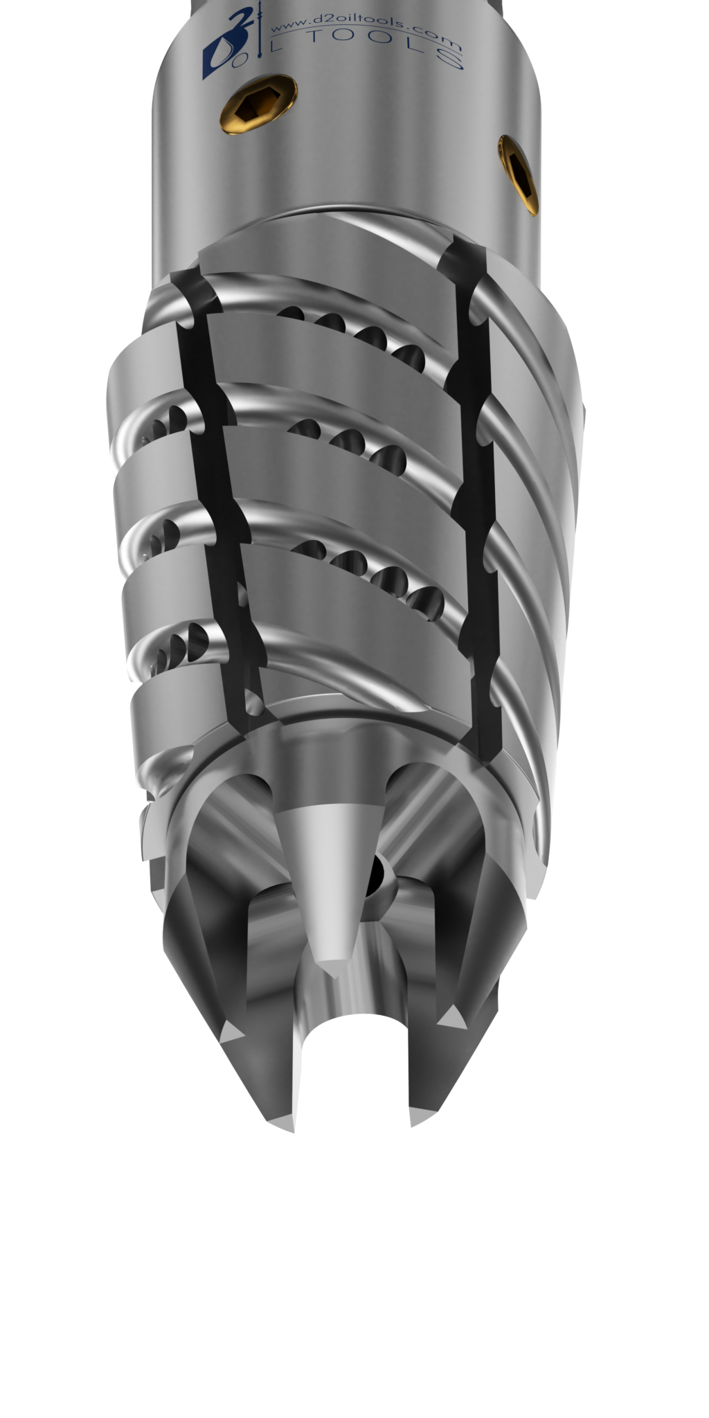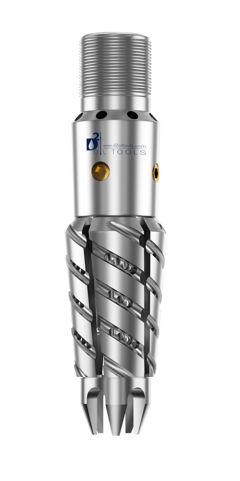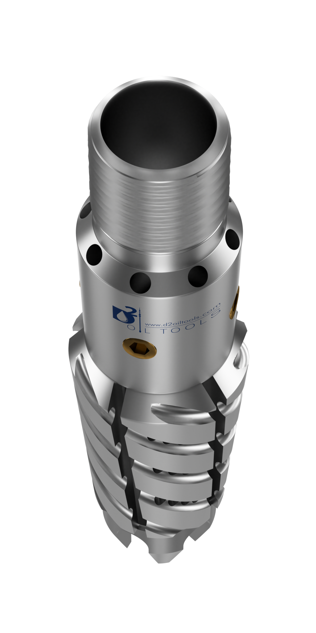 The D2 Oil Tools BIGMINI™ Jetting Scraper attaches directly to the lower end of any downhole tool that needs a clean casing wall to work properly. This is especially important for packers and retainers with rubber seals that must contact the casing wall to maintain pressure.