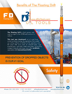 The Floating Drift is field proven and used on rigs in the GOM and on shore locations. This tool was developed out of need from actual problems during rig operations that ended up costing millions of dollars to the operators over